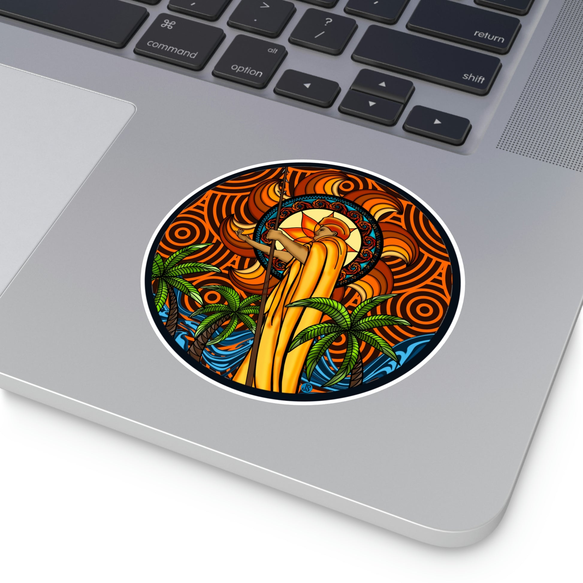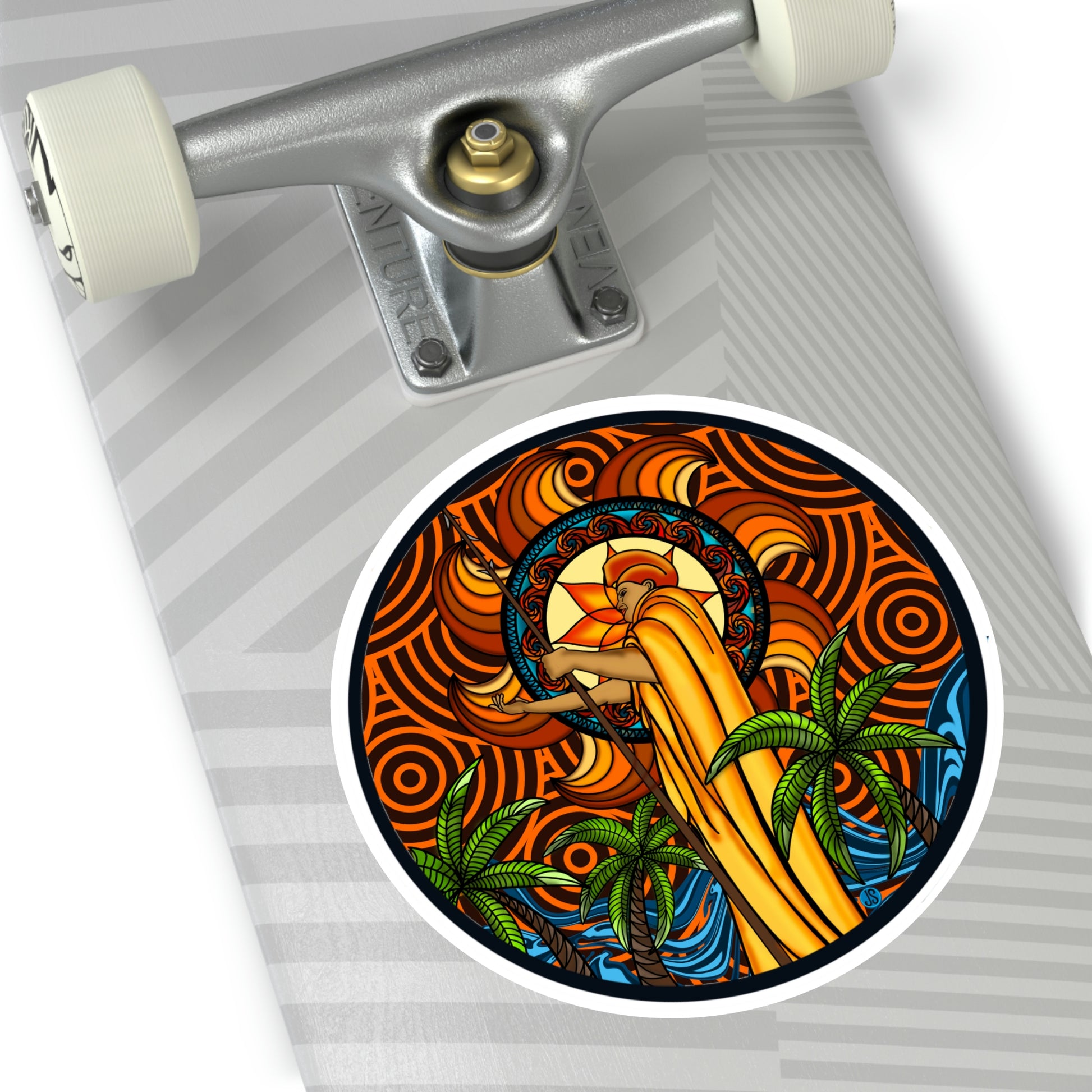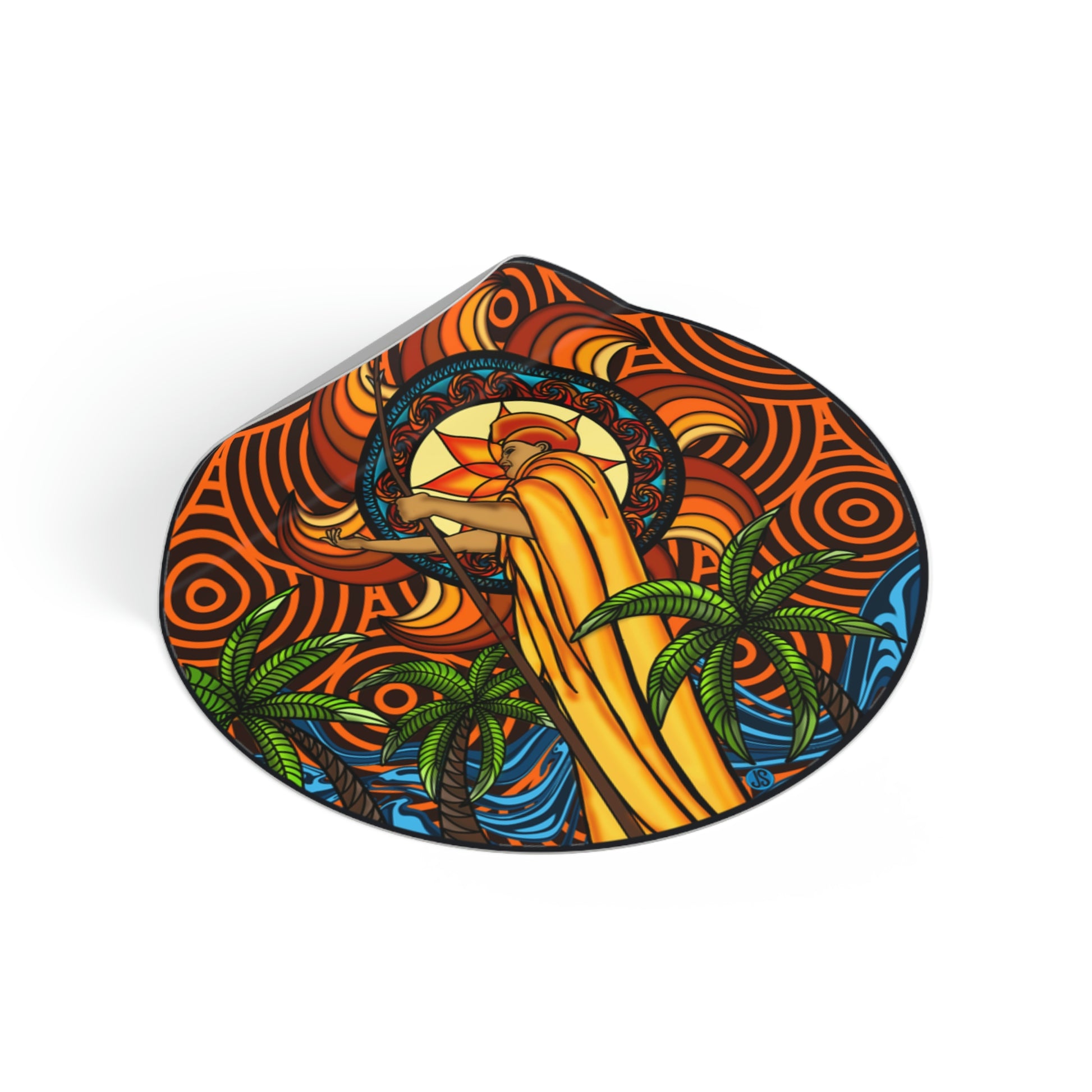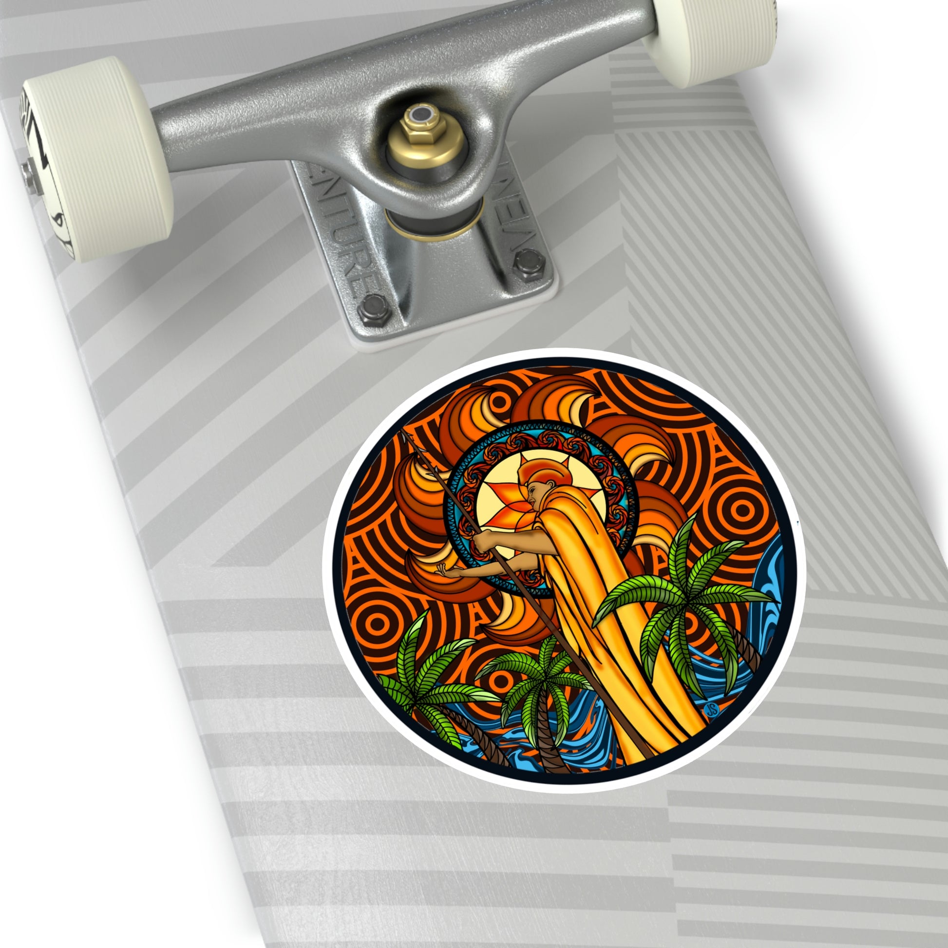 Our KOA Kona Hawaii Round Vinyl Stickers feature an illustration of Kona, Hawaii with its signature king Kamehameha. These high-quality vinyl stickers are weather-resistant and perfect for decorating your car, laptop, or notebook. Show your Hawai'i pride with these beautiful graphic stickers!.: Material: premium water-resistant vinyl.