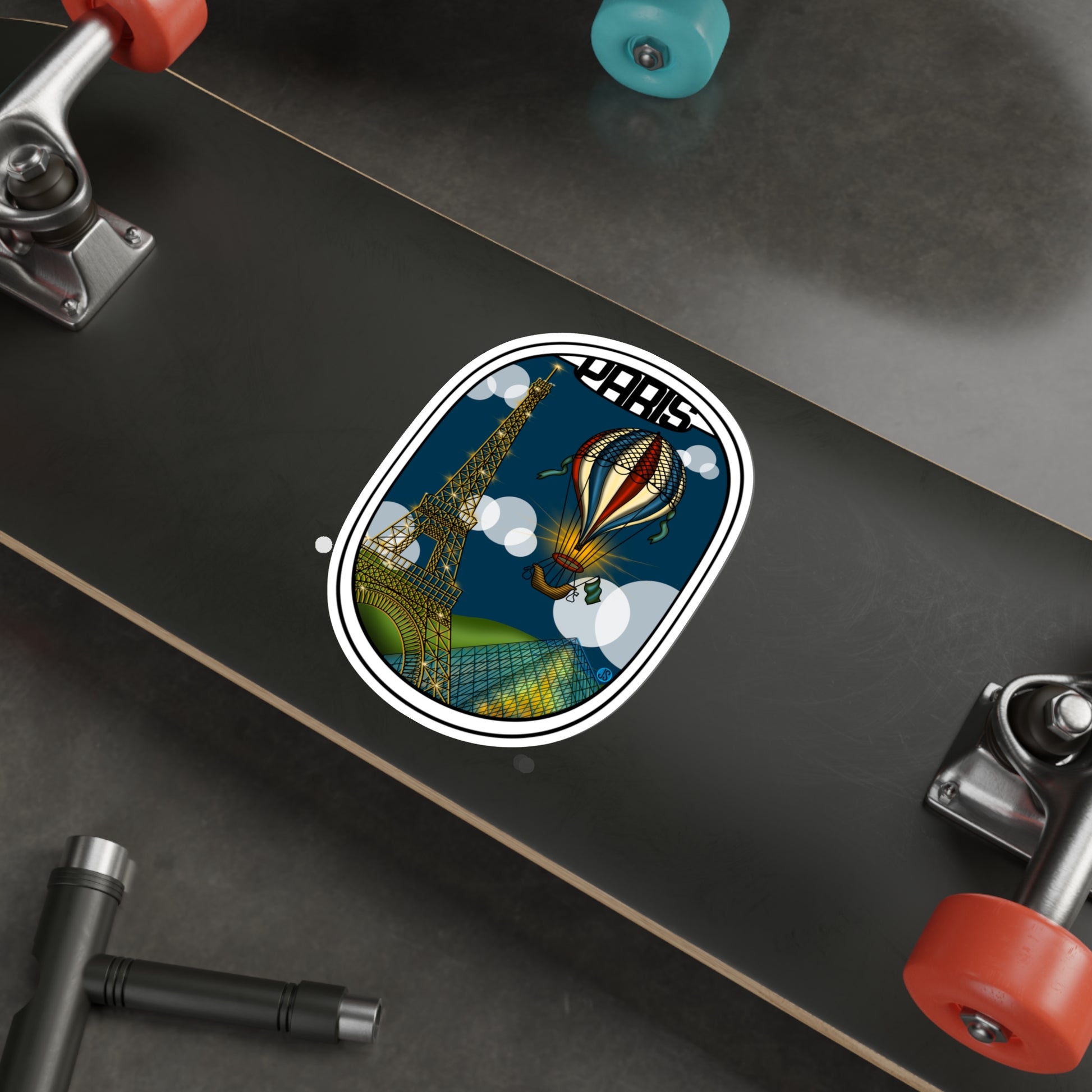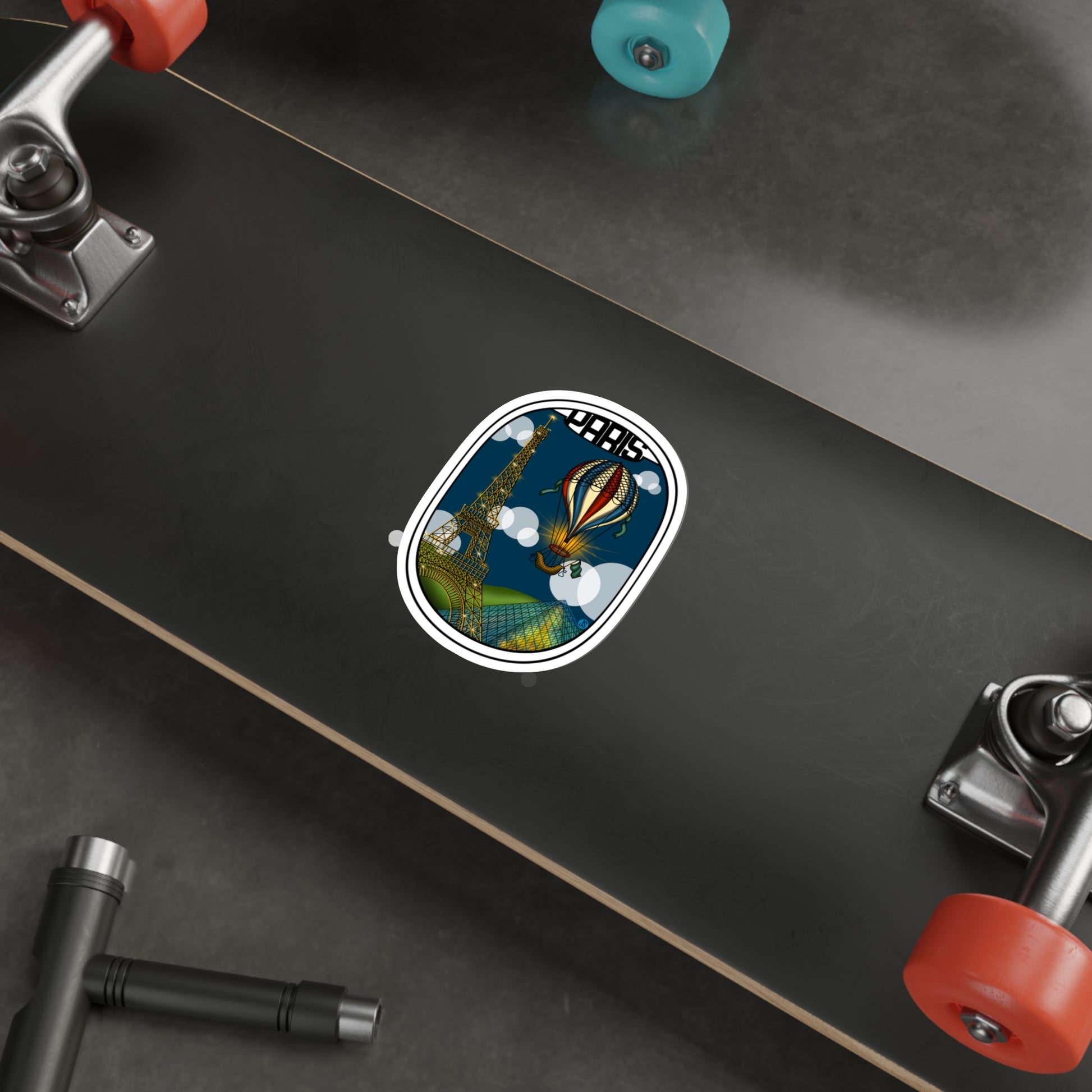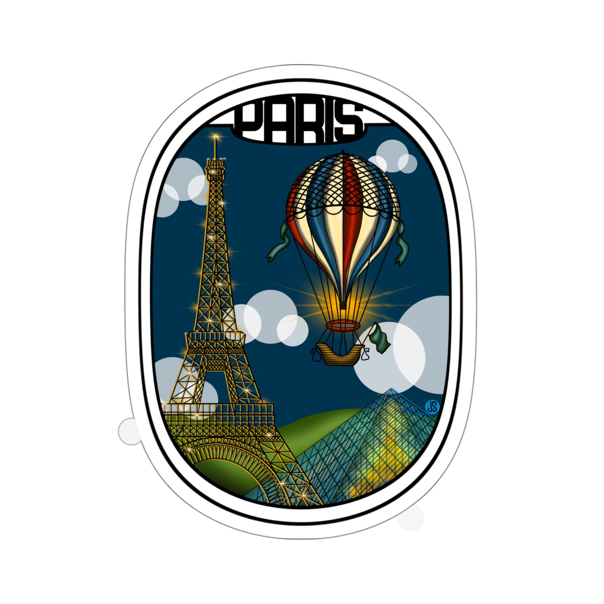 Paris icons looking great out the airplane window. Add a sticker to your water bottle and show your love for Paris.