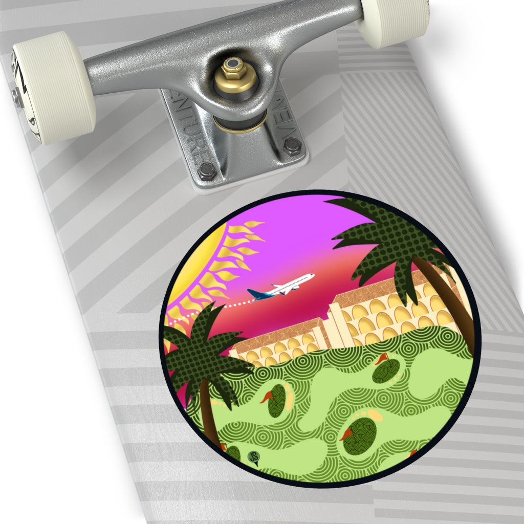 Phoenix golf Round Vinyl Stickers circle stickers are great for adding a touch of personality to any surface. These are rated to last over six years due to high-quality production. The base materials are premium vinyl and vibrant inks. The design layer is covered by a UV resistant laminate. If removal is necessary, the adhesive backing won't leave residue behind.