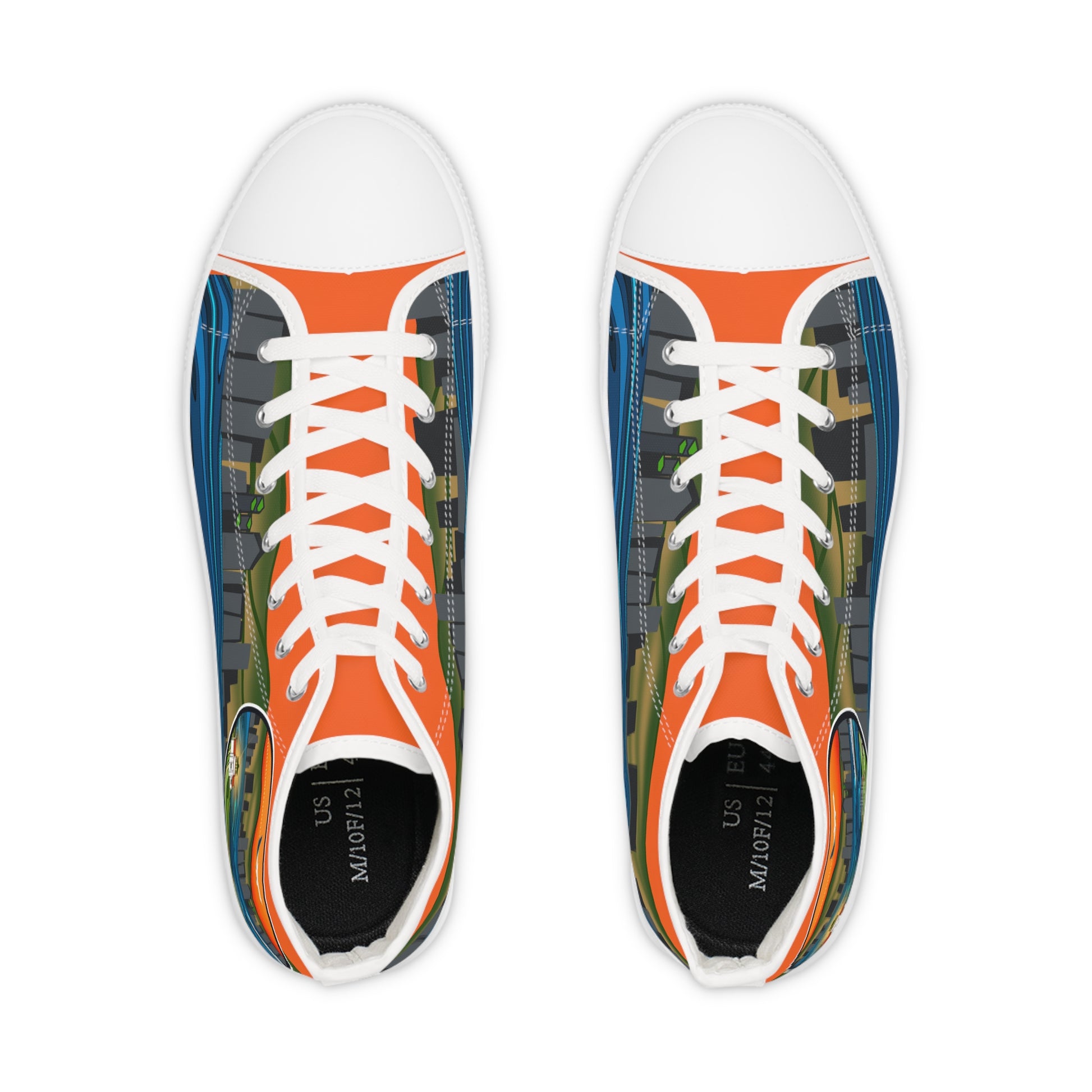 Made with breathable polyester canvas and featuring hi-poly deodorant memory foam insoles, these high top sneakers for men bear all the marks of an awesome shoe. Choose between black or white sole and laces, and enjoy the silver metal eyelets along with the lace-up closure. Add your designs and bring a bespoke staple to life.