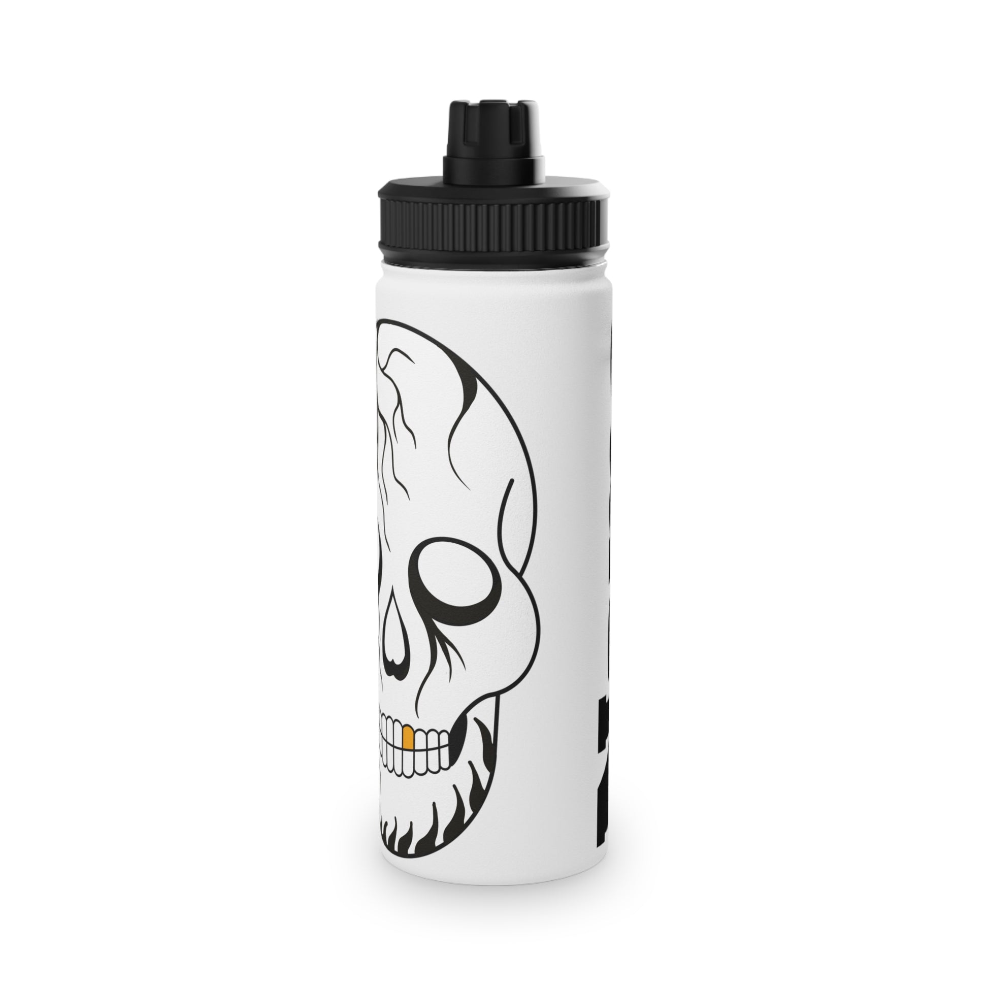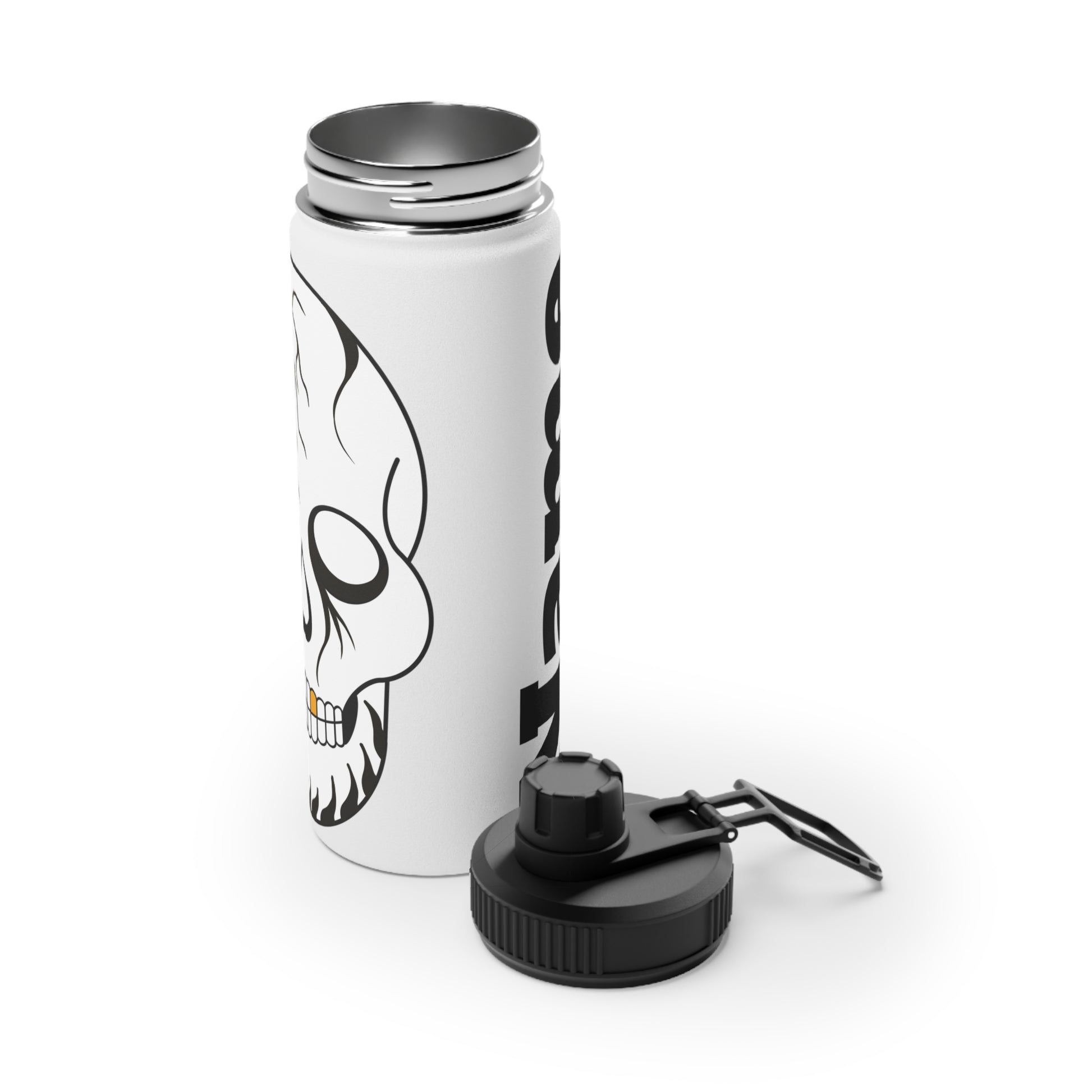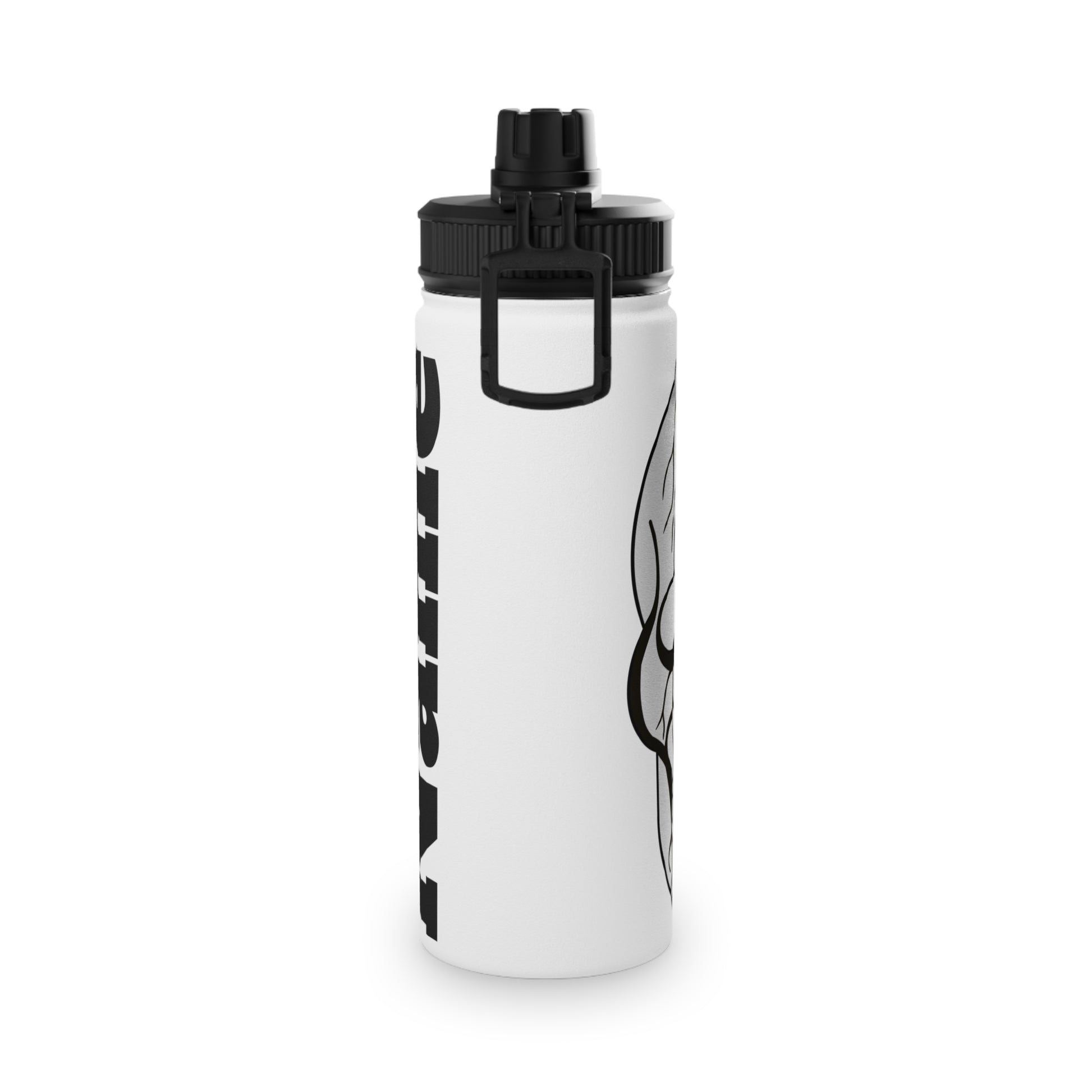 Quench your thirst in style with this stainless steel water bottle. Available in 3x sizes (12oz, 18oz, 32oz) this water bottle features a double-wall stainless steel construction that makes it a robust companion to all your excursions. This steel water bottle comes with a sports lid for easy sipping, making it excellent for all types of sports as well as training days at the gym and beyond.
